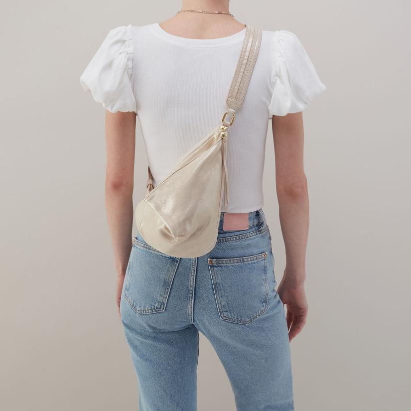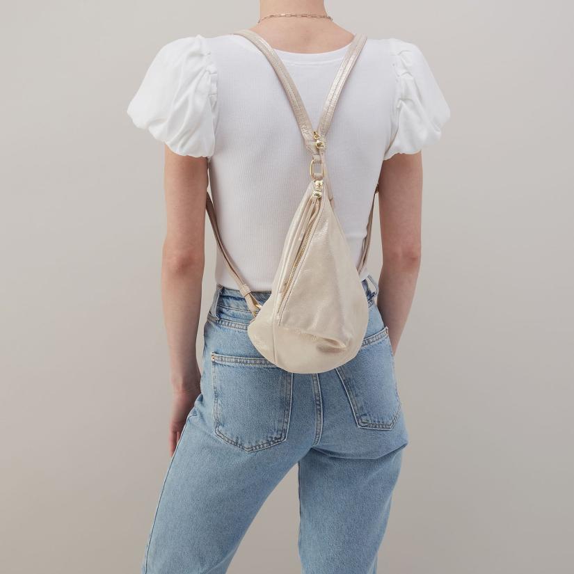 Slouchy and chic, a crossbody and a backpack – the small version of the Sway Sling contains multitudes. This bag pairs an effortlessly undone style with luxe metallic leather, because you may like comfort, but you always love to shine.