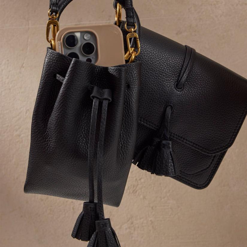 Durable pebbled leather crafted with care, so you can take on whatever life throws at you. Carry as a crossbody or a top handle bag – depending on your mood and outfit, of course. A simple pull of the tassel cinches your bag closed so your phone is safe, but within reach.
