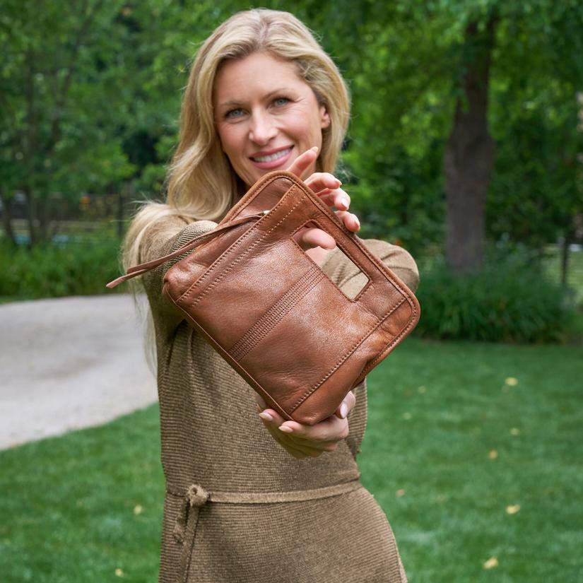 A convenient handle for grab & go moments, plus it is perfectly sized for your phone, keys, lipstick and more.