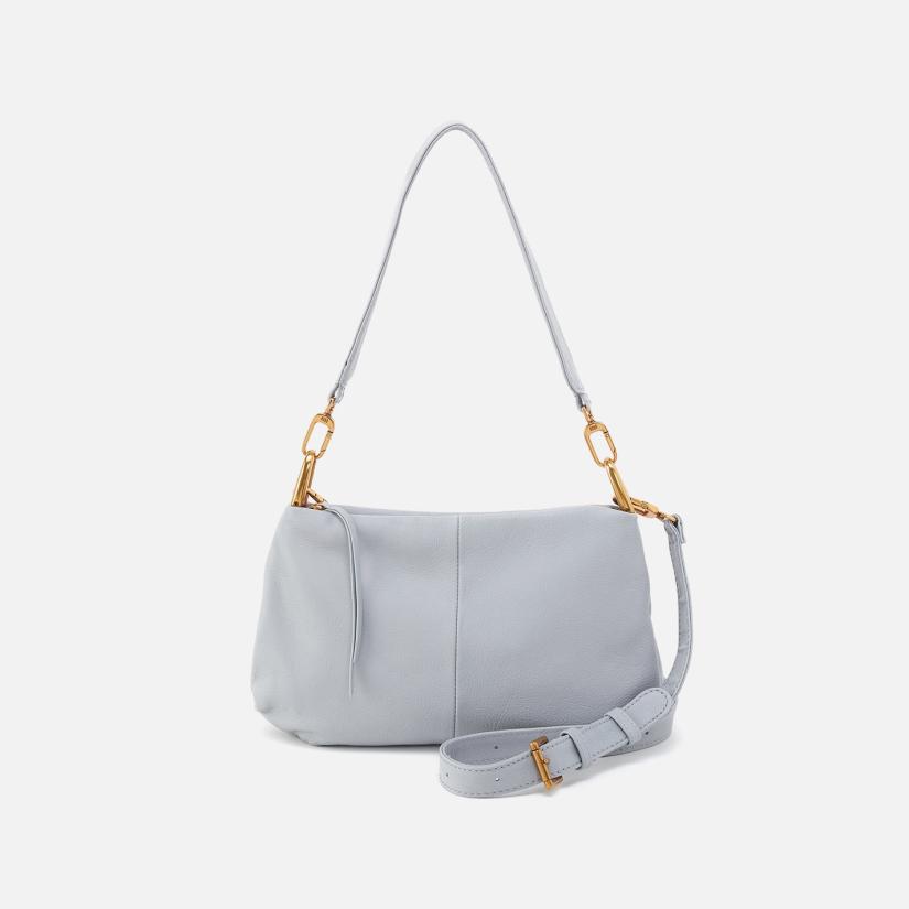 A leather shoulder bag with removable crossbody strap.