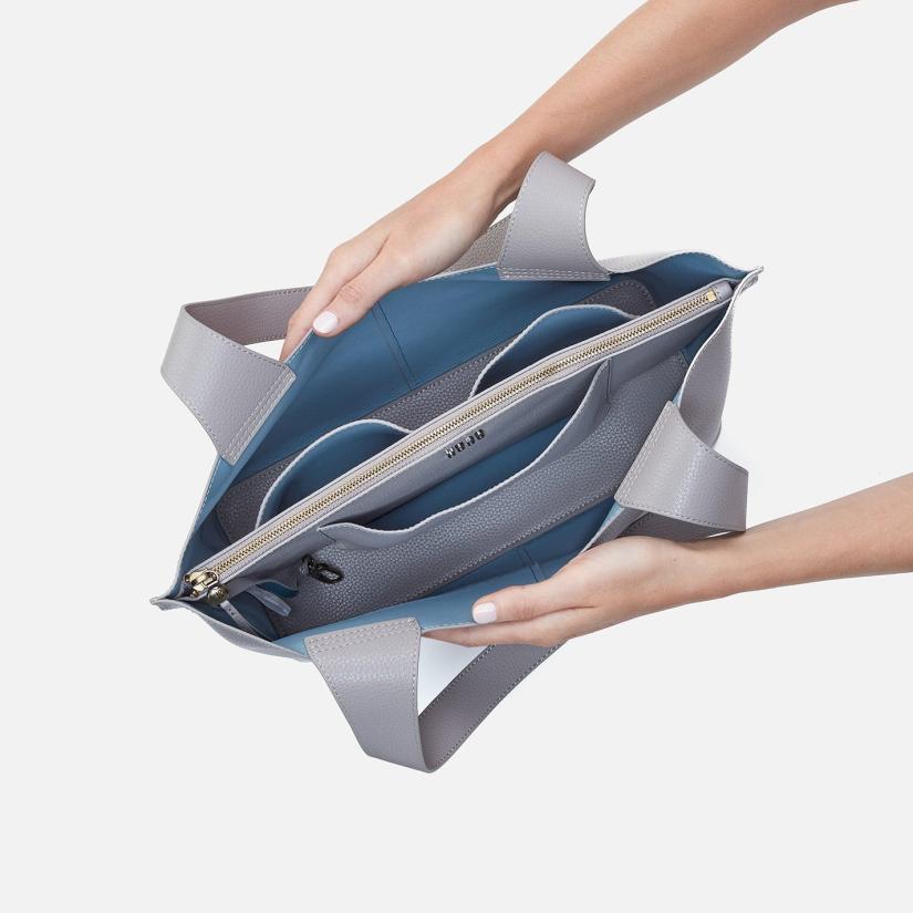 The spacious interior holds everything you need to get through the day. Zippered center compartment to keep necessities safe. Open slip pockets for easy grab moments.